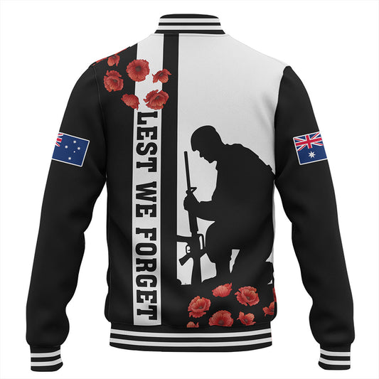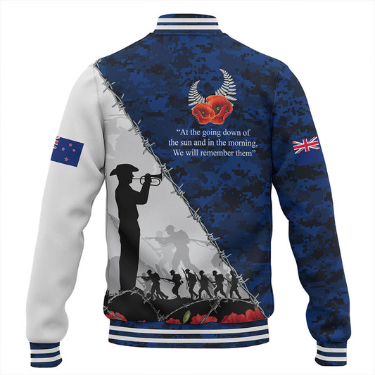 New Zealand Baseball Jacket Anzac Day Lest We Forget Poppy Flower Symbol