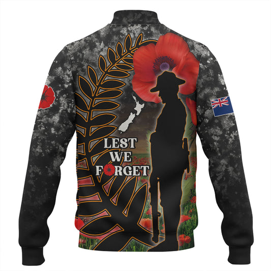 New Zealand Baseball Jacket Anzac Day Lest We Forget Poppy