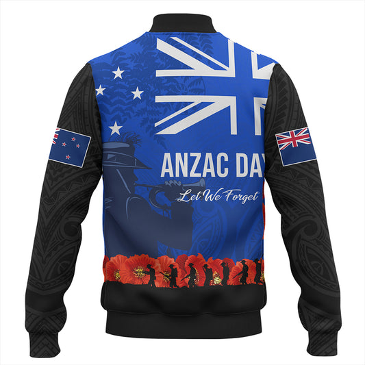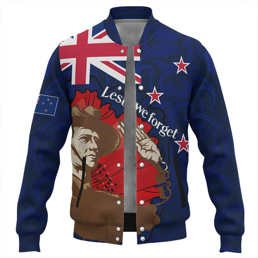 New Zealand Baseball Jacket Anzac Day Flag Lest We Forget