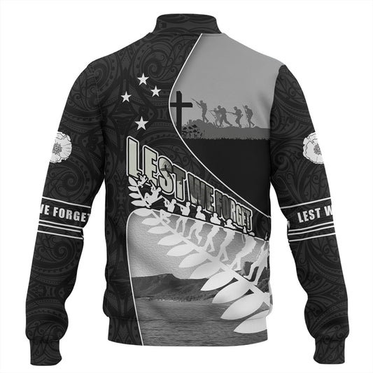 New Zealand Baseball Jacket Custom Anzac Day Lest We Forget Silver Fern