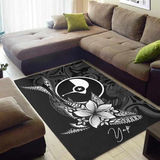 Yap State Area Rug - Fish With Plumeria Flowers Style