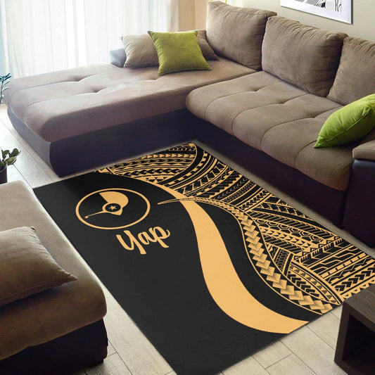 Yap Area Rug - Gold Polynesian Tentacle Tribal Pattern