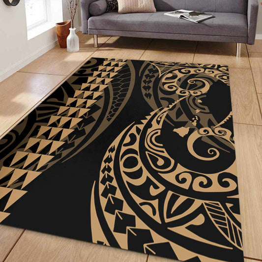 Hawaii Area Rug Hawaiian Map Kakau Style Gold
