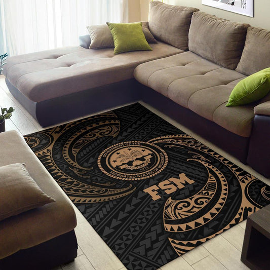 Federated States Of Micronesia Custom Personalised Area Rug - Gold Tribal Wave