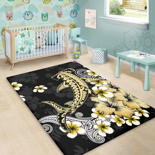 Hawaii Area Rug Hammerhead Shark Hibiscus Flower