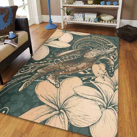 Hawaii Area Rug Turtle Map Plumeria Hibiscus Floral
