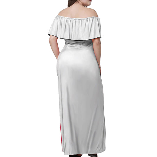 Austral Islands Off Shoulder Long Dress Kakau Style White