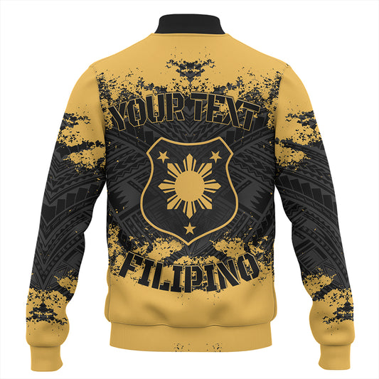 Philippines Filipinos Baseball Jacket Custom Grunge Texture Tribal Pattern