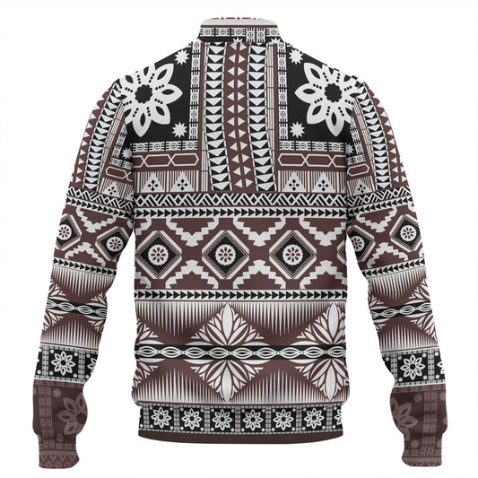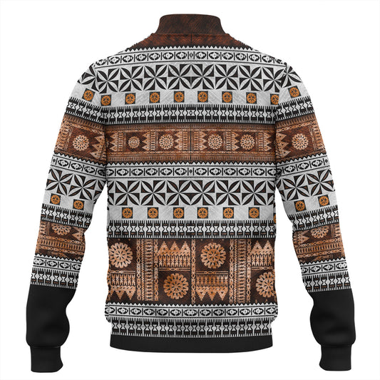 Fiji Baseball Jacket Fijian Tapa Pattens Brown Color Vintage Design