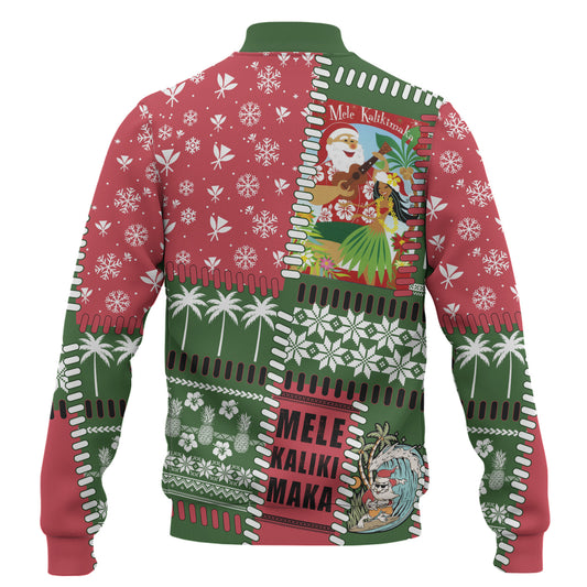 Hawaii Baseball Jacket Santa Surfing Mele Kalikimaka Kanaka Maoli
