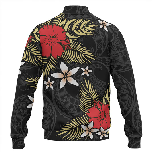 Polynesian Baseball Jacket Hibiscus Plumeria Flowers Polynesian Tribal Motif Patterns