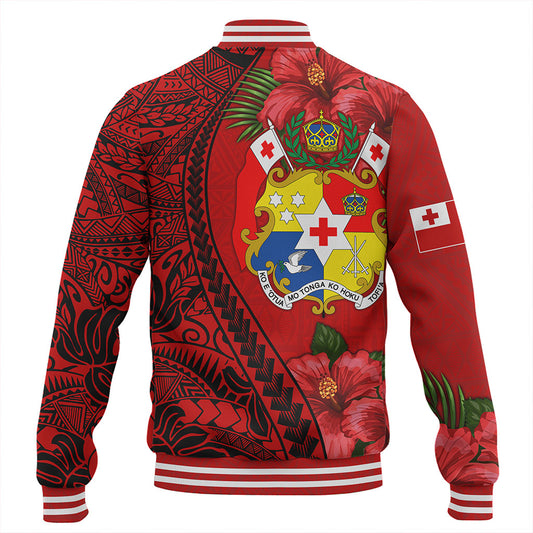 Tonga Baseball Jacket Tribal Polynesian With Hibiscus Flower
