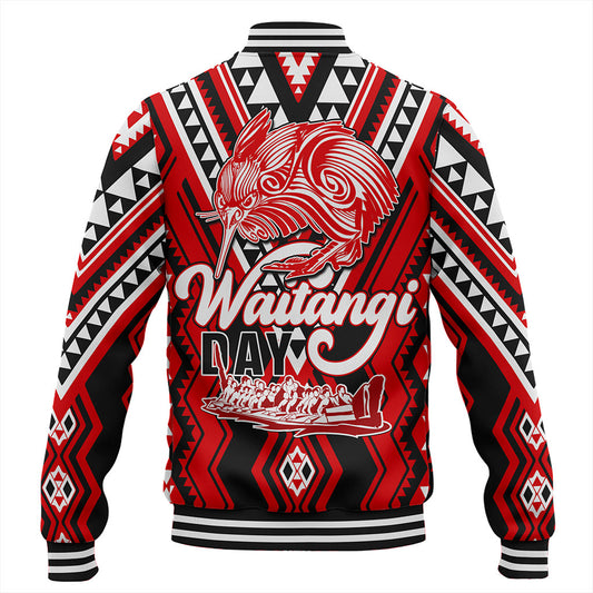 New Zealand Baseball Jacket Waitangi Day Kiwi Bird Pattern Fabric