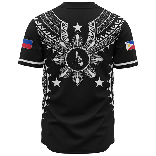 Philippines Filipinos Custom Personalised Baseball Shirt Black Sun And Stars Tribal Tatau Design