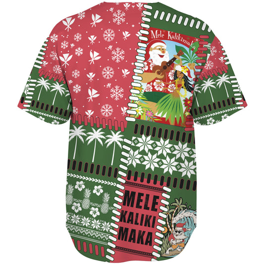 Hawaii Baseball Shirt Santa Surfing Mele Kalikimaka Kanaka Maoli