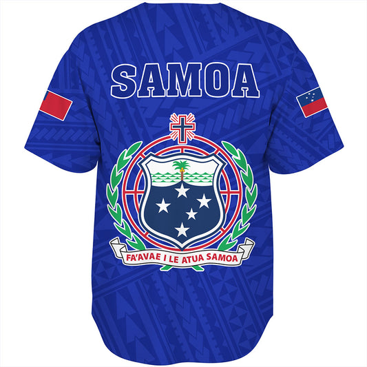 Samoa Baseball Shirt Floral Ulafala Lei Style Blue