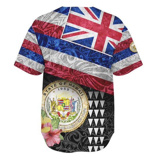 Hawaii Baseball Shirt Hawaiian Flag Polynesian Tribal Hibiscus Style