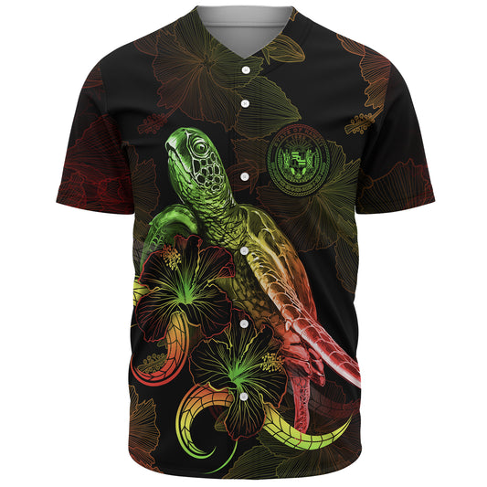 Hawaii Baseball Shirt Sea Turtle With Blooming Hibiscus Flowers Reggae