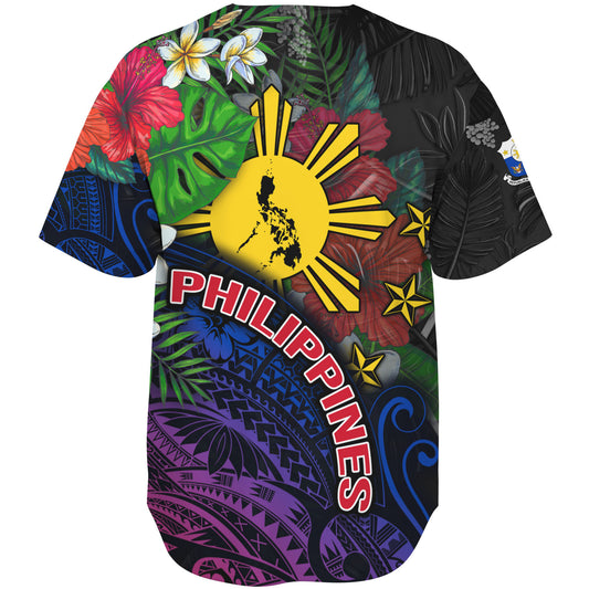 Philippines Filipinos Custom Personalised Baseball Shirt Filipinos Plumeria Flowers Mix Tribal Patterns