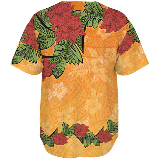 Polynesian Baseball Shirt Tropical Flowers Polynesian Tribal Motif