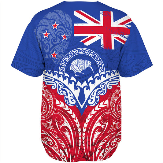 New Zealand Baseball Shirt Flag With Kiwi And Maori Pattern