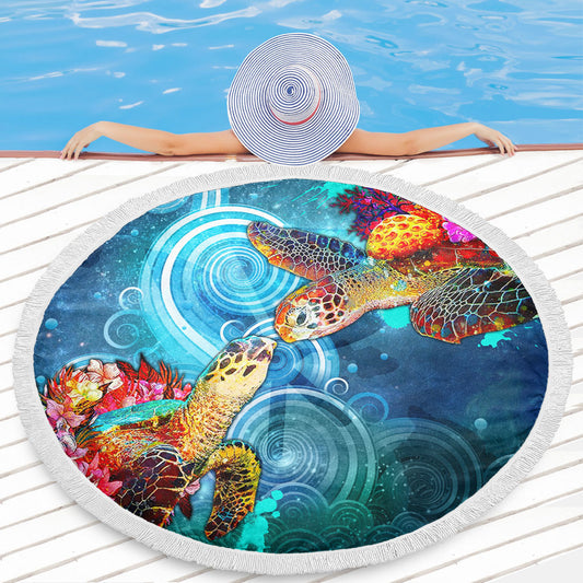 Hawaii Beach Blanket Turtle Polynesian Pattern Reggae Color