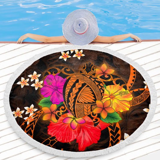 Hawaii Beach Blanket Turtle Polynesian With Hibiscus Flower
