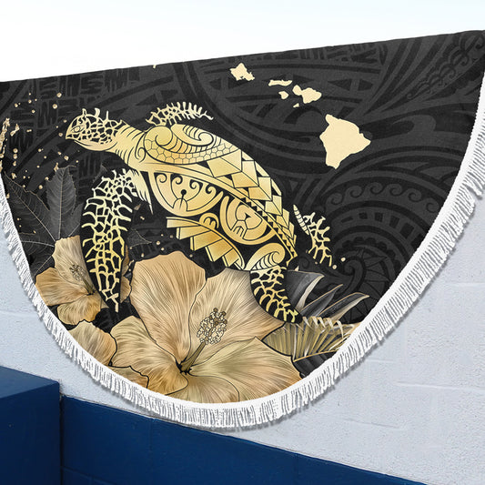 Hawaii Beach Blanket Hibiscus Flower And Map On The Back Turtle