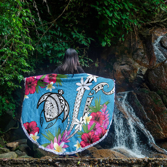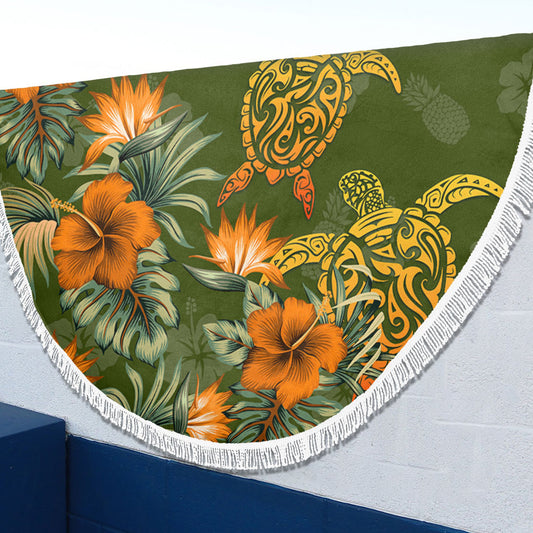Hawaii Beach Blanket Tribal Turtle And Flowers Island Life