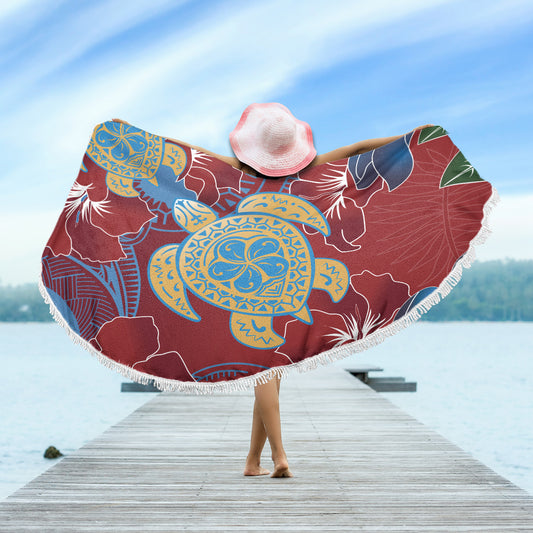 Hawaii Beach Blanket Polynesian Patterns Turtle Couple Hibiscus Plumeria Flowers