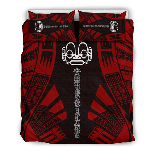 Marquesas Islands Duvet Cover Set - Polynesian Tattoo Red