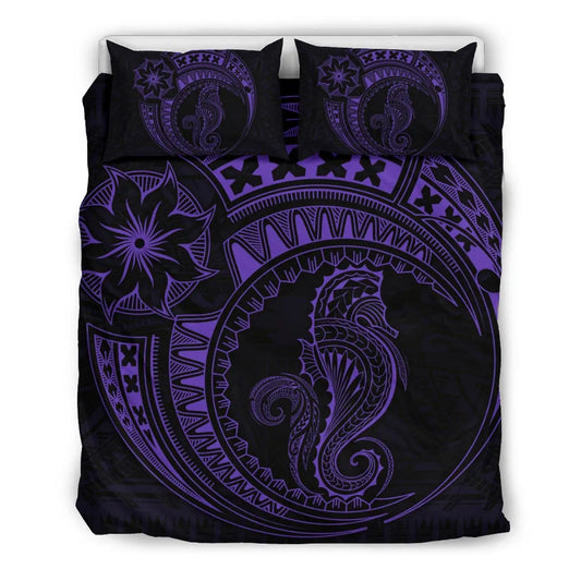 Seahorse Polynesian Duvet Cover Set - Polynesian Tattoo Purple