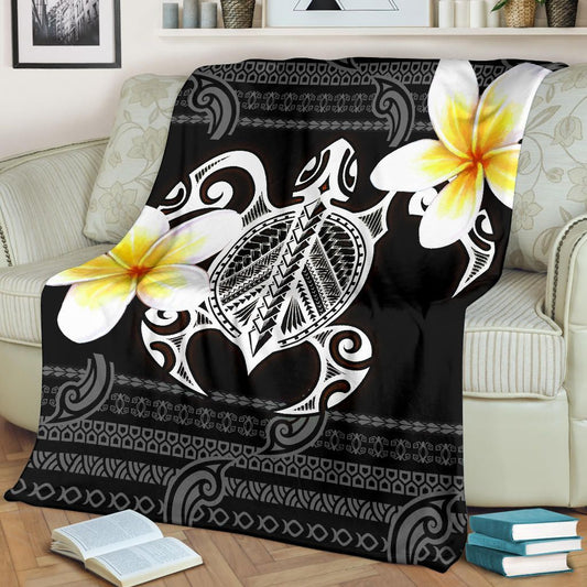 Hawaii Premium Blanket - Turtle Plumeria Flowers Polynesian Pattern