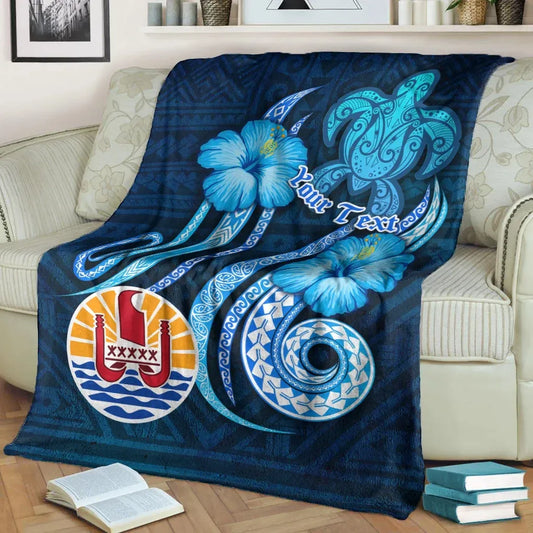 Tahiti Personalised Premium Blanket - Turtle and Tribal Tattoo Of Polynesian