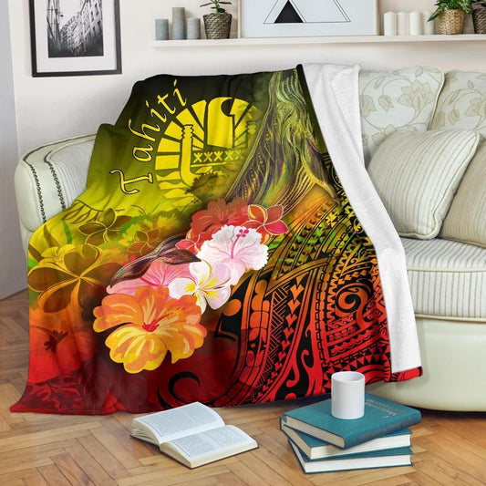 Tahiti Premium Blanket - Rainbow Polynesian Pattern