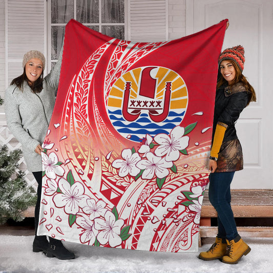 Tahiti Premium Blanket Polynesian Pattern Style White Flowers