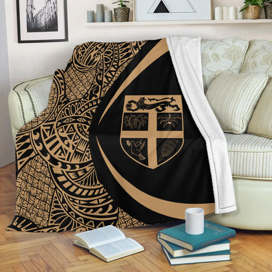Fiji Premium Blanket Coat Of Arms Polynesian With Hibiscus