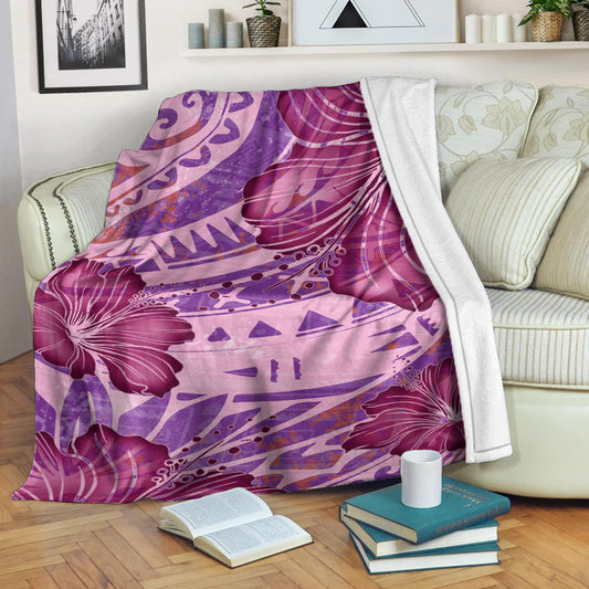 Hawaii Premium Blanket Polynesian Motif Purple Hibiscus
