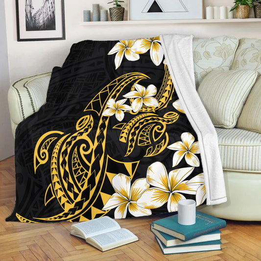 Hawaii Premium Blanket Polynesian Tribal Tattoo Plumeria Flower