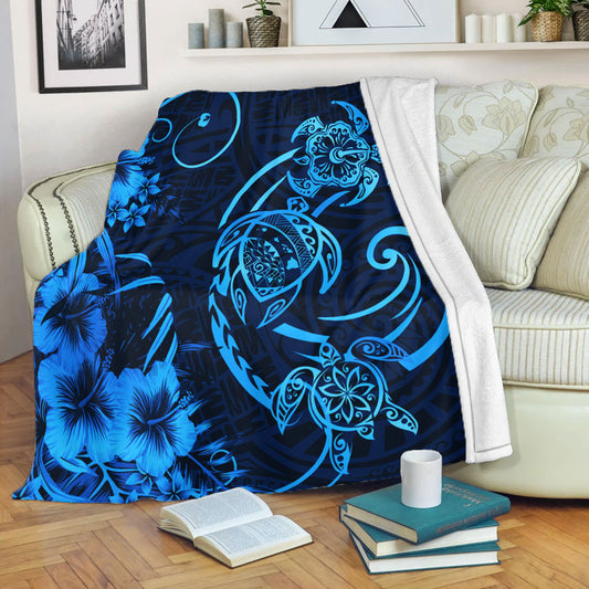 Hawaii Premium Blanket Hibiscus Flower And Map On The Back Turtle