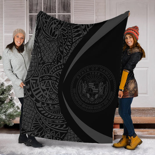 Hawaii Premium Blanket Coat Of Arm Lauhala Gray Circle