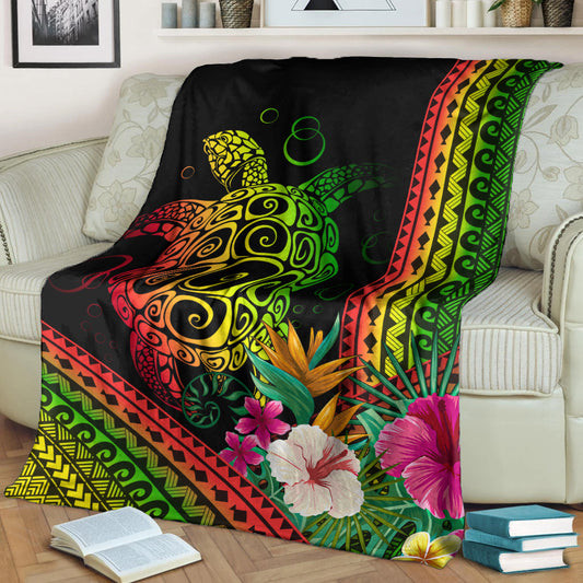 Hawaii Premium Blanket Turtle Polynesian Pattern Reggae Color