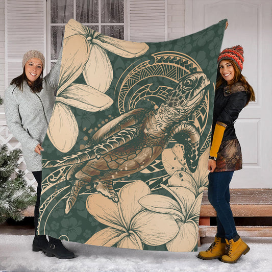 Hawaii Premium Blanket Hawaii Polynesian Turtle Tropical Gardient Green