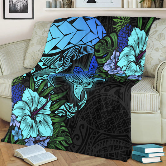 Hawaii Premium Blanket Polynesia Tribal Turtle Tropical Flower