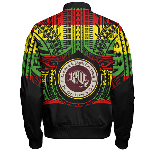 Hawaii Bomber Jacket Kaʻū High & PÄhala Elementary School Reggae Color Polynesian
