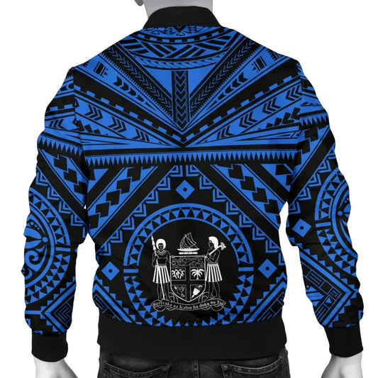 Fiji Personalised Bomber Jacket - Fiji Seal With Polynesian Tattoo Style (Blue)