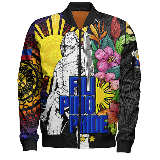 Philippines Filipinos Bomber Jacket Lapu-lapu Hero With Philippines Flowers Style