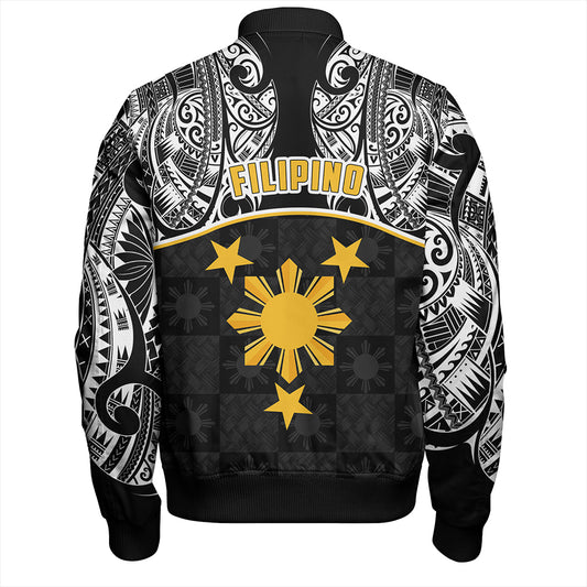 Philippines Filipinos Bomber Jacket Custom Grunge Texture Tribal Pattern