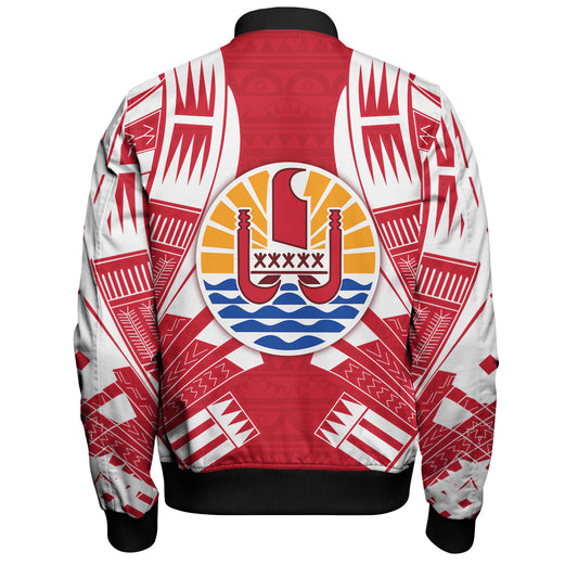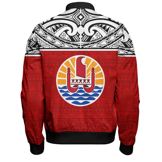 French Polynesia Custom Personalised Bomber Jacket Coat Of Arms Tribal Patterns Style