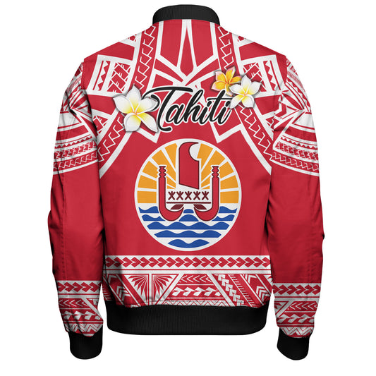 Tahiti Custom Personalised Bomber Jacket Tahitian Plumeria Flowers Mix Tribal Patterns